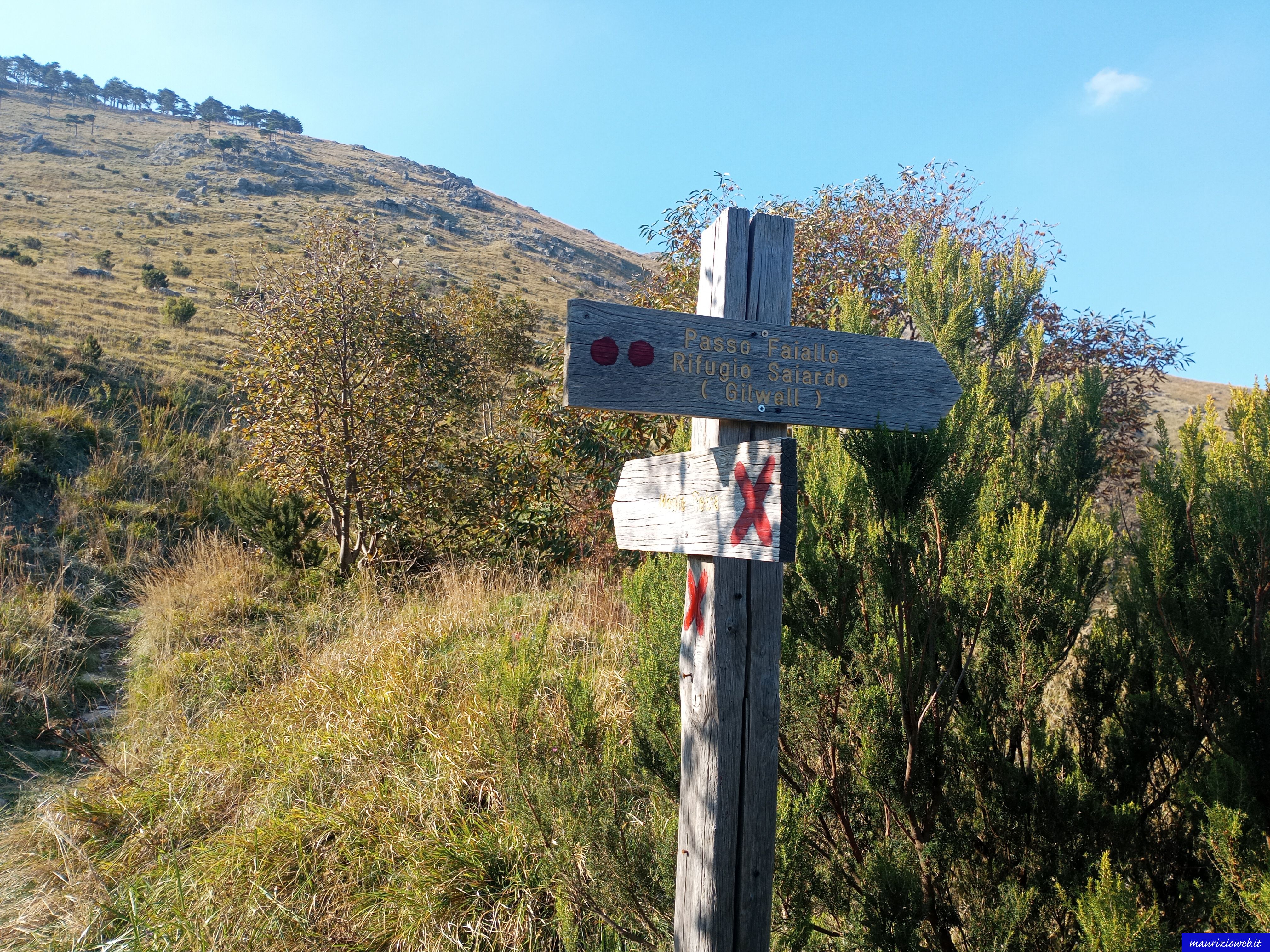 Per il ritorno si aprono alcune possibilità: ripetere il percorso fatto in salita, scendere lungo il sentiero che si trova di fronte alla cima che permette di raggiungere il bivacco Saiardo e Passo della Gava oppure, come in questa occasione, proseguire lungo il percorso dell'andata e raggiungere Passo Vaccaria (m.1112) dove si scende, svoltando a sinistra, prima lungo una traccia di sentiero dove sono presenti alcuni ometti e l'indicazione "M bianca" della Maremonti. Questa parte di sentiero passa poco distante dal Riparo Buniccu e davanti a Fonte Leone prima di incontrare il sentiero, deviazione a sinistra, che permette di raggiunge il Passo della Gava (m.750) o in alternativa il Riparo Gava che si trova a pochi metri dall'omonimo passo.